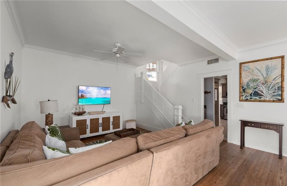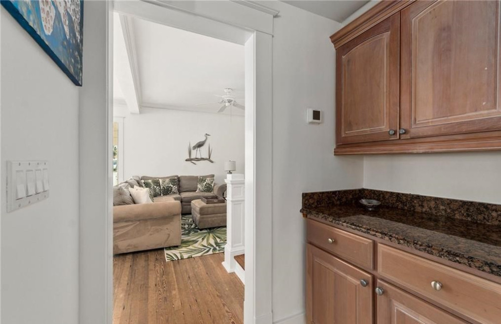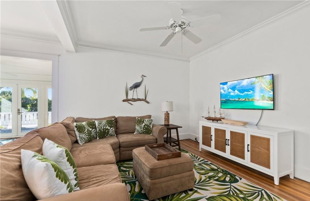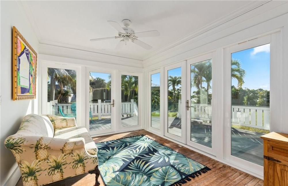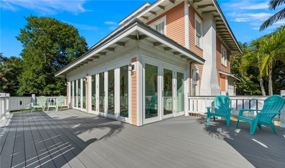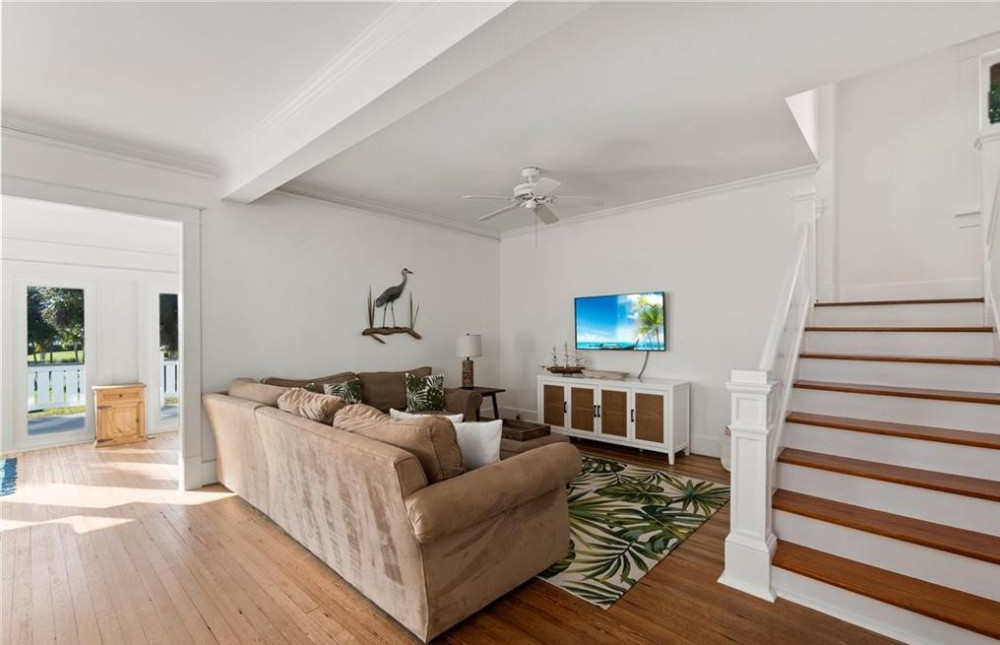 Historical home that offers views of the St. Lucie River, Veterans Memorial Bridge & has a boat slip that can accommodate a 30′ boat. The home was built in the early 1900’s in Palm Beach & was moved to this beautiful lot in Palm City in 2000. Inside you’ll find the original & coveted Dade County pine floors. Updates to the home include a kitchen remodel in the early 2000’s, an addition of a laundry room, 2nd bathroom downstairs, updated bath upstairs, expansive Sun porch. On the 2nd floor, you’ll find gorgeous views of the St Lucie River from the spacious master bedroom with King Bed and bedroom 2 offers a Queen bed, Bedroom 3 Offers a Queen and a single bed (Bedroom 3 is a small bedroom. There is a pull-out couch in Living room and one in the Sunroom. There is a large roof covered deck in back with grill and a T.V. This property is located 8 miles from Stuart Beach and all the local Restaurants and Bars. Great access to I-95 and only 35 mins from West palm beach airport. Only a 2-hour drive to Orlando parks.